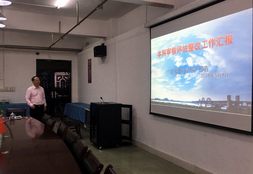根据我校本科教学工作审核评估校领导督查工作安排,5月9日下午,以杨耀防副校长为组长,医学部许礼生主任、药学与生命科学学院严晓华教授、评建办龚勇为成员的督查组一行四人莅临基础医学院督查本科教学工作审核评估整改和推进情况。基础医学院车向新院长、余朝阳书记、汪鑫副院长、各部门负责人、各教研室主任参加了督查汇报会。
