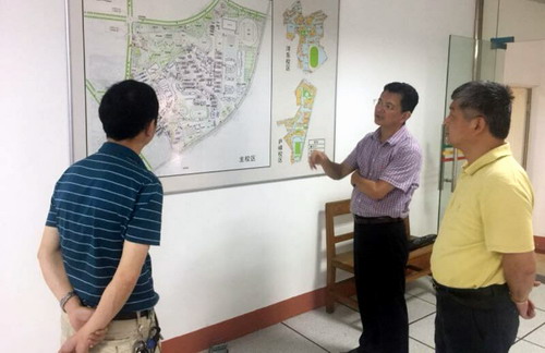 在保卫处主监控室,刘校长详细了解了学校校园监控的布局以及运行和日常管理情况。