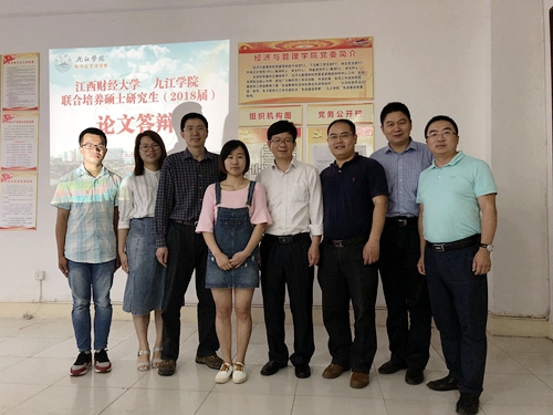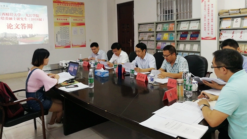 6月1日,由九江学院与江西财经大学联合培养的第一届国际商务硕士毕业论文答辩会在义丰楼619圆满完成。此次答辩的答辩委员会由江西省社科院副院长孔凡斌教授、江西财经大学国际经贸学院刘建副院长、黎新伍教授、南昌大学经管学院许水平博士以及我校经管学院周业付教授共同组成,孔凡斌教授担任答辩主席。答辩会开始之前,校长刘晓东、副校长王万山专程到义丰楼看望了孔凡斌教授一行,并就硕士点申报和硕士生培养等问题进行交流。