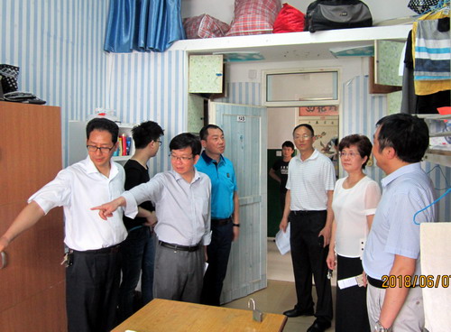为落实《九江学院校园环境卫生专项整治活动》要求,检查本学期宿舍落实校园环境卫生专项整治工作成果,部署下阶段宿舍环境卫生综合整治的具体工作,以良好的宿舍环境迎接本科预评估专家组进校检查,6月7日下午,王万山副校长在学生处、学生宿舍管理中心负责同志的陪同下,带领主校区各二级学院党委书记对主校区学生宿舍环境卫生进行了全面检查。