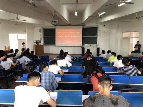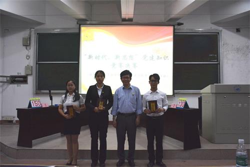6月13日晚,旅游与国土资源学院党建活动月系列活动之 “新时代、新思想”党建知识竞赛决赛在竞知楼阶梯教室四举行,副校长王万山为获奖代表队颁奖并对比赛进行了点评,旅游与国土资源学院党委书记黄伟及学生党支部全体党员、入党积极分子共计两百余人观看了比赛。