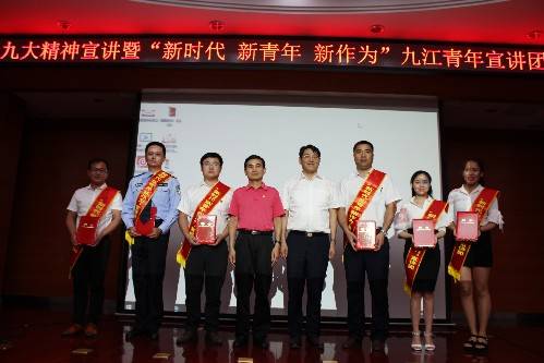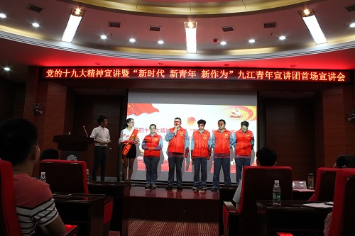 6月19日下午,党的十九大精神宣讲暨“新时代 新青年 新作为”九江青年宣讲团首场宣讲会在我校逸夫报告厅开讲,市委常委、副市长张新龙,九江学院党委副书记魏立平,市委宣传部副部长傅五七,团市委书记宋晓妤、各界青年代表和我校师生一起聆听先进典型宣讲。