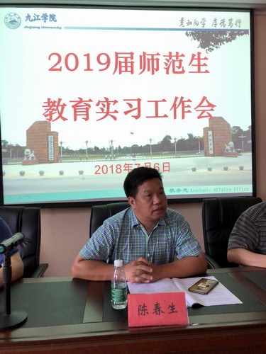 教务处师范教育科科长杨泽明介绍了2019届师范生教育实习总体安排情况,教务处副处长张伏龙对教育实习带队教师的工作职责进行了说明。实验中心主任方向明就教育实习的工作要求进行了说明,并布置了赣县支教和音体美专业师范生支教的下一步工作。