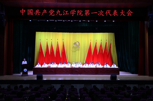 在雄壮的《国际歌》乐曲中,中共九江学院第一次代表大会胜利闭幕。