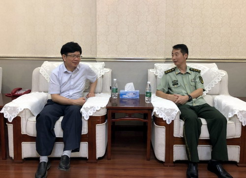 座谈中,王副校长代表学校向武警九江支队全体官兵致以崇高的敬意和节日的问候,对武警九江支队多年来对我校国防教育、新生军训等工作给予的大力支持表示衷心感谢,徐利民政委对学校领导的走访慰问表示欢迎,对学校一直以来给予武警部队的支持和帮助表示感谢,并表示武警九江支队将会一如既往的大力支持和帮助学校国防教育工作。