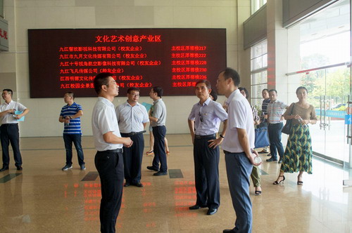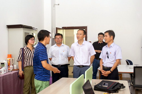 巡回拉练组一行还实地来到艺术学院、大学科技园观摩指导。潘建文边走边听,不时驻足,对学生文化创意作品、非物质文化传承产生浓厚兴趣;对推进多元化建团、促进第二课堂和第一课堂融合给予了肯定;对学生创业的帮扶机制,创业项目孵化流程和入驻企业的情况进行了关注。