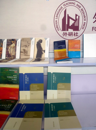 为配合第24届世界哲学大会,外语教学与研究出版社与10余家著名中外出版社,联合举办了“世界哲学书展”,九江学院“中华经典的公理化诠释”系列著作(外研社出版发行),包括《<论语>的公理化诠释》中英文对照版、中法文对照版、中日文对照版,《<孟子>的公理化诠释》中英文对照版,陈列在展台的显著位置,吸引了众多的参会者阅读、讨论与购买。