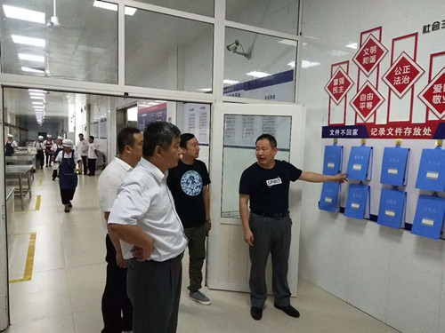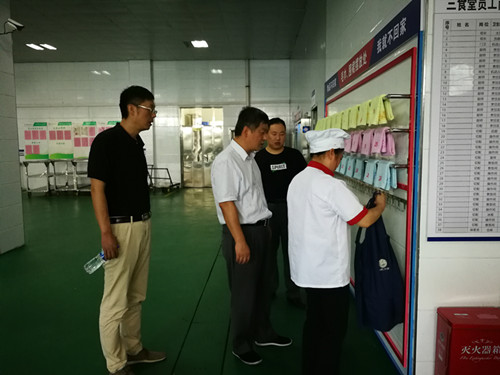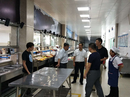 夏副校长还深入后堂,从仓库、食品加工区、烹调间、洗消间、更衣室、备餐间到售卖大厅等每一个地方,都进行了仔细的检查和询问,并提出了指导性意见。夏副校长还就各食堂迎新准备工作进行了询问,并要求饮食服务中心严防食品安全底线,牢固梳理服务师生的大局意识、责任意识,为师生提供安全放心的餐饮服务。