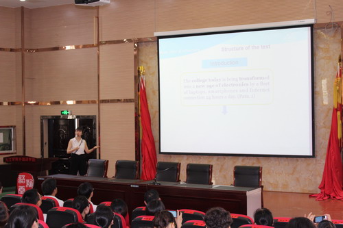 教学是学校工作的中心,而课堂教学则是提高教育教学质量的关键。外国语学院一直重视此项工作,认真开展听课活动,努力提高教学质量。9月2日上午,副校长陈春生、查振华参加了外国语学院开展的公开示范课活动。