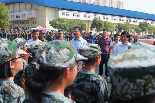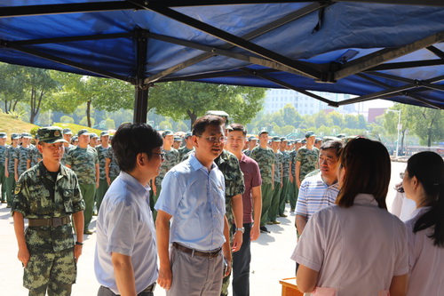 9月11日上午,刘晓东校长在王万山副校长陪同下在军训现场看望了正在军训的2018级新生和军训教官,承训部队和学生处负责人随同。