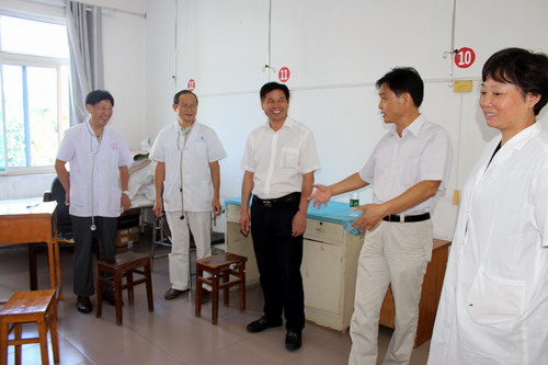 校医院贾宗林院长向杨副校长详细汇报了整个体检的工作安排,并陪同杨副校长到各体检科室,查看体检流程和进度,并和部分医务人员、受检的新生进行了交谈,当来到测量血压的体检点时,还亲自为新生测量了血压。看到新生体检过程工作组织严密、井然有序,医护人员认真负责,态度和蔼的工作状态给予以了充分的肯定和赞扬,他指出,新生体检工作是迎新工作的重要环节之一,校医院作为九江学院的医疗保障单位,在短期内需要完成新生的入学复查体检,任务重,责任大,希望校医院每一位员工认真对待新生体检任务,保质保量地完成新生体检工作。