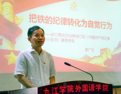 报告中,校纪委书记李广欣从“新纪律处分条例的特点、主要内容和贯彻落实新纪律处分条例的要求”等三方面为大家作了深度的解读。整个辅导报告深入浅出、通俗易懂,既有严谨的理论阐述,又有生动形象的案例说明,对大家进一步学习贯彻落实新修订的《中国共产党纪律处分条例》,培养党员领导干部自觉遵守党的纪律并转化为自觉行为有着极大的促进作用和指导意义。