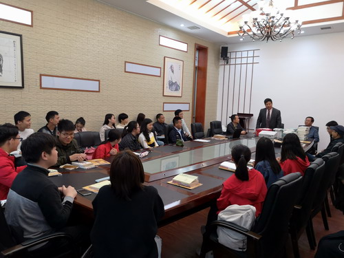陈春生副校长在典礼上发表了热情洋溢的讲话。他高度肯定国学经典研读班在传承发展中华优秀传统文化和学校教学改革中的重要意义。十八大以来,党和国家高度重视中华优秀传统文化,相继出台了《关于实施中华优秀传统文化传承发展工程的意见》《完善中华优秀传统文化教育指导纲要》等文件,对高校如何开展中华优秀传统文化传承发展提出了明确意见。几天前,教育部和国家语委联合印发了《中华经典诵读工程实施方案》,明确了中华经典诵读工程的实施意见。九江学院开办国学班四年多来,在学生素质提升和对外交往中表现突出,取得了可喜成效,要进一步总结经验,加强探索,办出特色。陈副校长还就学校本科教学审核评估工作向同学们提了几个问题,当他听到同学们正确而流畅的回答后很满意。他赞赏同学们关心学校,热爱学习,并就学校本科教学审核评估工作要点简明扼要地向同学们作了解释。他希望同学们充分利用九江优秀文化资源和学校有利条件,学习优秀传统文化,提高综合素质,为个人进步奠定良好基础,为学校发展做出自己贡献。