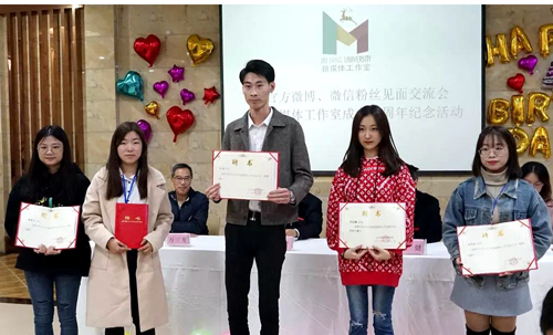 党委宣传部副部长万三友为新媒体工作室六期学生编辑颁发聘书并提出要求,他希望每一位学生编辑都要认真学习领会,坚决贯彻落实,习近平总书记在全国宣传思想工作会议上的讲话精神。聚焦我校学习贯彻习近平新时代中国特色社会主义思想,加速推进教育教学改革发展的生动实践;聚焦我校特色鲜明的校园文化魅力;聚焦全校师生团结奋进的精神风貌;聚焦我校第一次党代会制定的宏伟发展蓝图。用广大师生、网友喜闻乐见的形式,讲好九院故事,唱响主旋律、提振精气神,凝聚正能量。同时,他希望学校其他部门、二级学院的新媒体工作者和广大粉丝一如既往的支持官方微博、官方微信建设。互相学习、加强交流,多提宝贵意见。