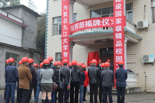 11月15日上午,我校在教育资源整合建设项目指挥部临时办公点举行挂牌仪式。校党委书记赵伟,校长刘晓东,副校长纪岗昌、夏启国,濂溪区区长容长贵、濂溪区鄱阳湖生态科技城管委会副主任杨运新、十里街道党工委书记杨忠猛、五里街道党工委书记虞功智、莲花镇党委书记陈超、濂溪区房管局副局长金圣平等出席仪式,副校长夏启国主持仪式,相关部门负责人和指挥部全体人员参加仪式。