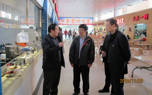 11月23日下午,副校长王万山在学生处处长刘平、基建处副处长陈志荣、饮食服务中心主任蔡飞、宿管中心主任王结选、保卫处房凯旋科长的陪同下对主校区校园安全工作进行巡查。