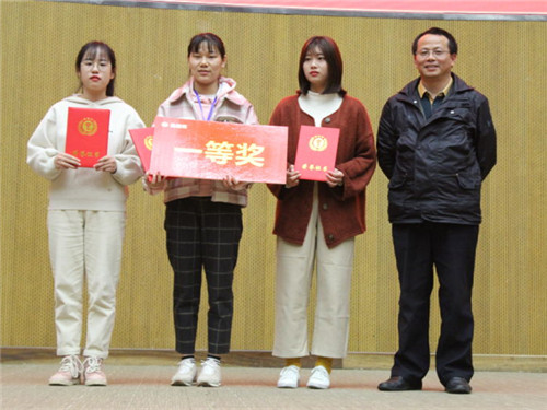 2018年全国税务技能大赛总决赛于11月21、22日在浙江杭州成功举办。九江学院代表队在领队会计学院党委副书记罗维、指导老师蔡报纯副院长、唐小明老师带领下,2016级会计学专业卓越班黄小凤、龚亚男、卢懿三名同学不负众望,以323.227分的总成绩获得本科组团体总分第一名,卢懿取得税务公务员岗位个人奖第一名,黄小凤取得办税员岗位个人奖第二名。同时,九江学院会计学院刘聪燕、吴菲、张莹三名同学获得专科组“团体三等奖”。