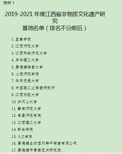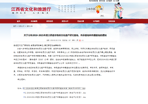 近日,从江西省文化和旅游厅获悉,我校申报的“2019-2021年度江西省非物质文化遗产研究基地”已被省文化和旅游厅立项并获批。