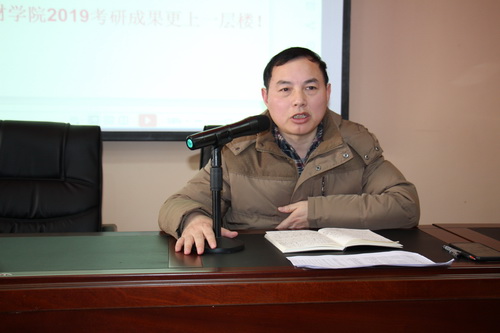 会上,纪岗昌首先对机材学院的各方面的工作给予了肯定,同时对考研同学们表示热烈的祝贺。他再三强调同学们要明白考研的意义,考研是本科学生人生中的重要环节,通过考研刻苦学习的过程,对学生在学习知识上的梳理、持之以恒的性格养成、良好习惯的培养、综合能力的增强都起到了良好的促进作用。最后,纪岗昌副校长对同学们提出了几点希望:一、认真复习,做好复试工作;二、充分利用资源,做好调剂工作;三、考研结束后,认真完成毕业设计,为大学学习画上完美的句号。