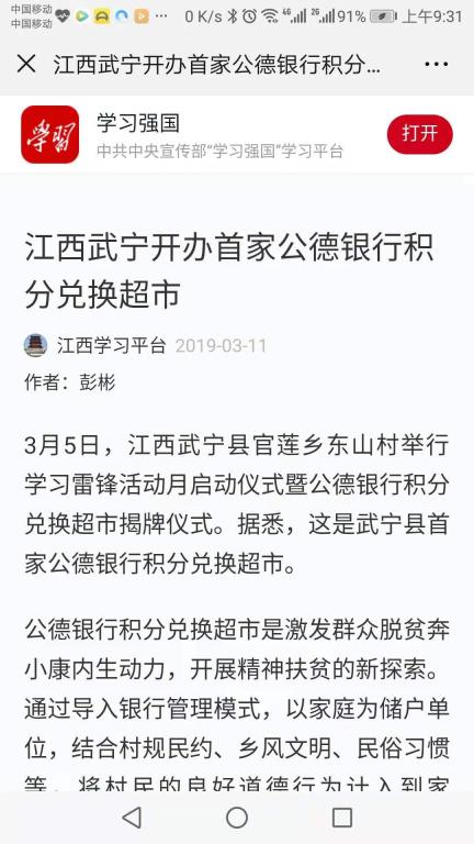 为进一步创新扶贫模式,学校出资3万元在扶贫点开展了“公德银行积分兑换超市”的建设,旨在进一步激发贫困户的内生动力!(学习强国网2019年3月11日https://article.xuexi-cn/html/10951409261940896942.html?study_style_id=feeds_default&pid=&ptype=-1&source=share&share_to=wx_single&from=groupmessage)