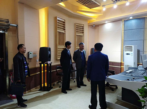 朱洪波一行先后参观了艺术学院MIDI音乐制作室、琴房、民乐合奏室、录音棚和音乐厅,并在舞蹈房观看了王常琳老师的舞蹈教学课,在排练厅观看了九江交响乐团的排练。