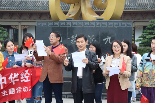 “九派浔阳山水间,鄱阳湖上潮动天。风劲帆张涛声激,辉煌征途史无前”。作为“我和我的祖国”庆祝新中国成立70周年主题教育活动之一,4月28日下午,政法学院A1611班全体同学赴八里湖九派诗廊开展“相约八里湖畔 发扬五四精神 诵读中华经典”主题实践活动。校党委副书记魏立平作为联系该班的“双体验”校领导应邀出席,八里湖校区管理办主任邓燕、政法学院党委书记高翔、班主任李仲文及院团委刘梦老师一同参加。