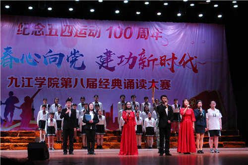 晋级此次诵读大赛共有10支学院代表队。大赛现场气氛热烈,参赛选手们以高涨的热情,饱含深情地诵读经典书目。