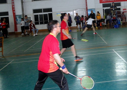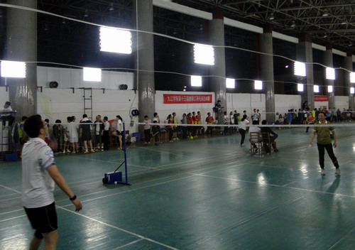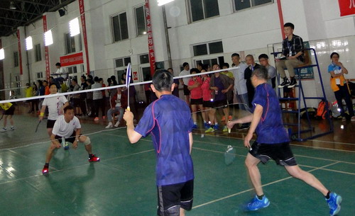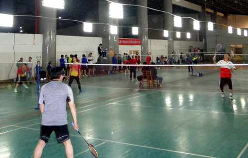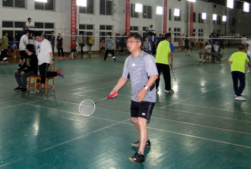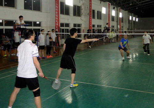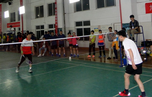 5月9日晚,由校工会主办,体育学院、校学生羽毛球协会协办的校第十四届教职工羽毛球混合团体赛在主校区体育馆羽毛球馆举行,比赛吸引了18支队伍100余人参加。校长刘晓东,副校长夏启国,校纪委书记李广欣参加了比赛。校领导和教职工们携手同行,并肩奋战,在赛场上留下一道道靓丽风景。