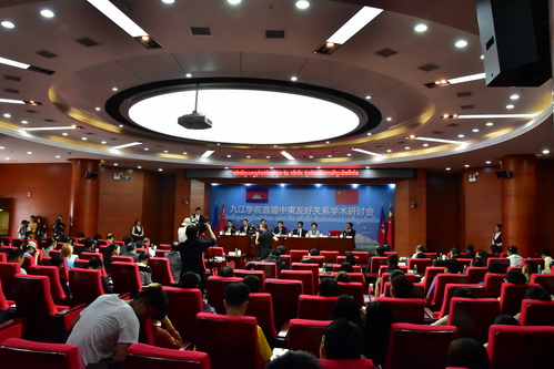 九江市人民政府副市长张新龙在致辞中向各位专家学者介绍了九江的人文历史,他指出,中国和柬埔寨是友好邦邻,两千年的交往源远流长。时至今日,两国在政治、经济、军事及文化教育等方面关系更为密切。在此大背景下,九江学院对口援教柬埔寨的华文教育,与柬埔寨皇家科学院合作承办孔子学院。这也促进了九江与柬埔寨教育文化科技等领域的交流与合作,带动了九江对柬埔寨的经贸往来。此次研讨会必将为促进柬埔寨孔子学院发展、打造九江学院柬埔寨研究中心品牌、加强中柬两国人文交流发挥积极作用。