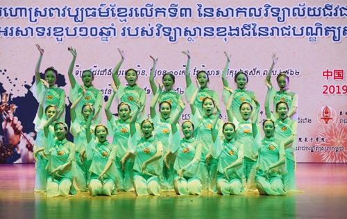 2019年是九江学院作为承办院校建设的柬埔寨皇家科学院孔子学院揭牌10周年,5月13日晚,“第三届柬埔寨文化节暨柬埔寨皇家科学院孔子学院成立十周年庆典晚会”在九江学院在礼堂举行。来自柬埔寨的专家团、艺术团成员以及我校柬埔寨留学生和中国师生欢聚一堂,共叙中柬传统友谊,共享孔院发展成果,共商人文交流事宜。