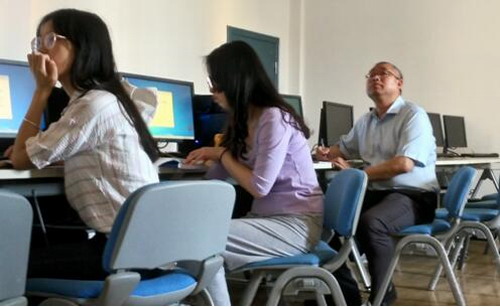 5月23日上午,副校长陈小林在信息中心603教室随堂听取了殷明芳老师给信A1731班学生上的一节《界面设计》课。
