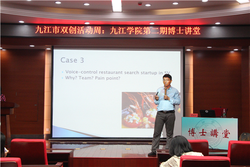 5月30日下午,为迎接九江市双创活动周,为我校第五届“互联网+”大学生创新创业大赛决赛预热。由学工处、团委主办的第二期博士讲堂开展创新创业报告会,第四届中国“互联网+”大学生创新创业大赛国赛评委、校友詹朋朋博士作了题为“如何在创业路演与赛事中脱颖而出”的精彩报告。参加“互联网+”大赛的学生创业团队200余人聆听了报告,报告会由团委书记闫来英主持。