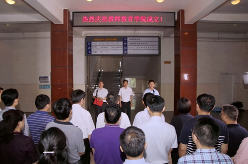 在欢快的乐曲声中,校党委书记赵伟、校长刘晓东为教师教育学院揭牌。现场师生向学校教师教育学院的成立报以热烈的掌声。