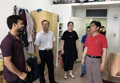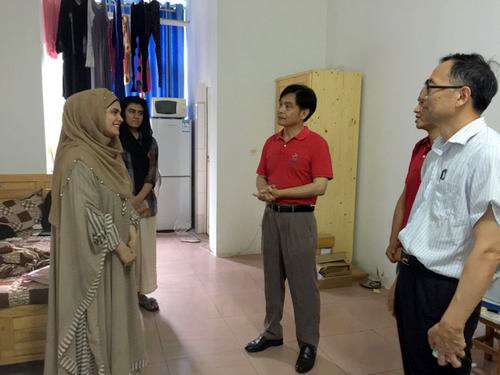 杨副校长还对留学生宿舍的用电、用水和消防安全情况进行了检查,嘱咐学生辅导员和宿管员关注暑期留学生的安全,经常巡查,发现问题,及时处理。
