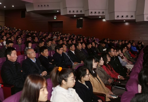 根据省委统一安排,11月26日上午,学习贯彻党的十九届四中全会精神省委宣讲团宣讲报告会在我校主校区大礼堂举行。省委宣讲团成员、省委宣传部副部长、省委教育工作领导小组副组长吴永明作宣讲报告。校党委书记赵伟主持报告会。校长刘晓东,副校长纪岗昌、王万山、杨耀防、夏启国,纪委书记李广欣,副校长陈小林,校党委委员王殿元、冯健,及副科以上领导干部、师生代表600余人参加报告会。