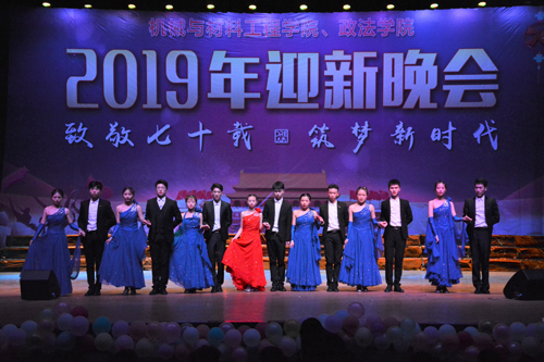 11月2日晚,政法学院与机材学院在我校大礼堂联合举办“致敬七十载,筑梦新时代”主题迎新文艺晚会。校党委副书记魏立平,副校长纪岗昌,副校长陈小林到场观看,学生处、校团委相关负责人和政法学院、机材学院党政领导、教职工代表及全体2019级新生一同观看晚会。