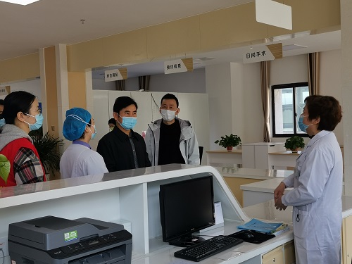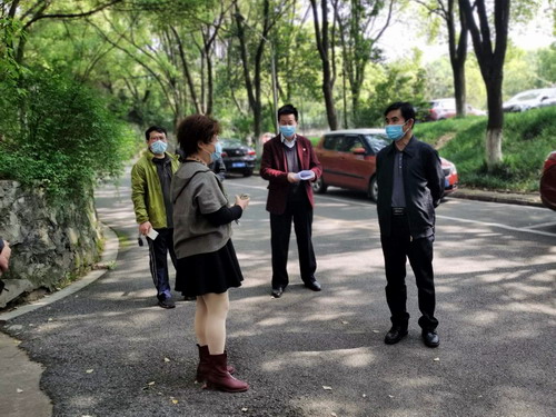 魏立平一行先后来到学校西大门、教工二村、附属医院等地,按照创文测评要求,重点查看校园绿化、环境卫生、车辆停放、医院卫生设施等情况,详细听取了工作人员对志愿服务、宣传栏更新等情况汇报。