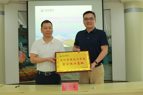 陈永钊代表政法学院向九江市律师协会授牌“九江学院政法学院实习就业基地”。