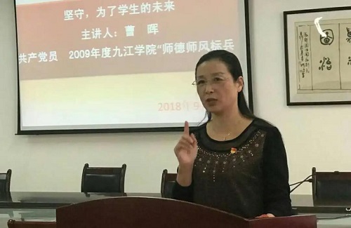 孙小明:开展师德漫谈系列讲座,是为了响应当时学校开展的校风建设深化年活动,针对学院青年教师比例大的特点而开展的一项特色活动。以此促进广大教师不断提高师德修养。讲座主要针对青年教师,利用周三下午全院集中的机会,每月一次,资深的老师也一起陪听。讲座每次围绕一个师德修养理念,讲十到二十分钟。教职工普遍反映效果不错。我们还邀请九江市6位知名书法家书写师德格言,装裱悬挂于学院各办公室、会议室,以激励教工自觉加强师德修养。