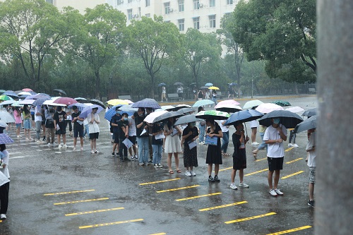 一大早,刘晓东一行冒雨来到香远楼考点,检查考生现场身份审核情况,认真听取教务处负责同志对考务、疫情防控、后勤保障等工作的汇报。考试期间,刘晓东、陈春生一行来到考场监控室,通过视频查看考场整体情况,要求工作人员认真履职,及时发现汇报处理突发事件;深入考区教室逐一巡视,检查考场纪律、教师监考等情况。