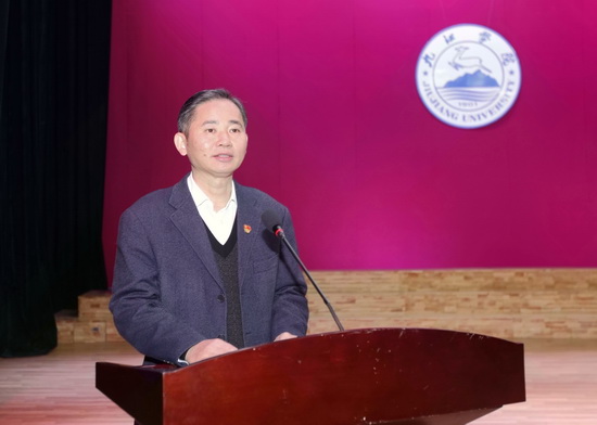 12月17日下午,根据省委统一安排,联系九江学院的省领导副省长吴浩来校作报告,为学校师生上了一堂生动的思政课。省政府副秘书长刘晓艺、省委教育工委宣传部牵头负责人魏建克、省政府办公厅秘书四处副处长王江南、省政府办公厅喻建华参加报告会。报告会在九江学院大礼堂举行。学校党委书记赵伟主持报告会。学校班子成员与师生代表600余人一同聆听了吴浩副省长的报告。