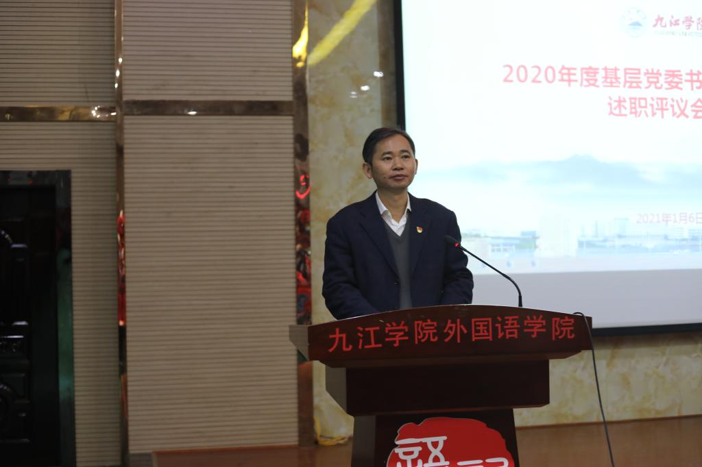 1月6日下午,学校在香远楼三楼报告厅召开2020年度九江学院基层党委书记抓党建工作述职评议会议。校党委书记赵伟,校长刘晓东,副校长纪岗昌、王万山、杨耀防、夏启国、查振华,纪委书记李广欣,党委委员王殿元、冯健、刘遵海出席会议。各二级学院、各部门党政主要负责人,组织员,二级学院党支部书记,学生党员代表,“两代表一委员代表”参加会议。会议由党委副书记魏立平主持。