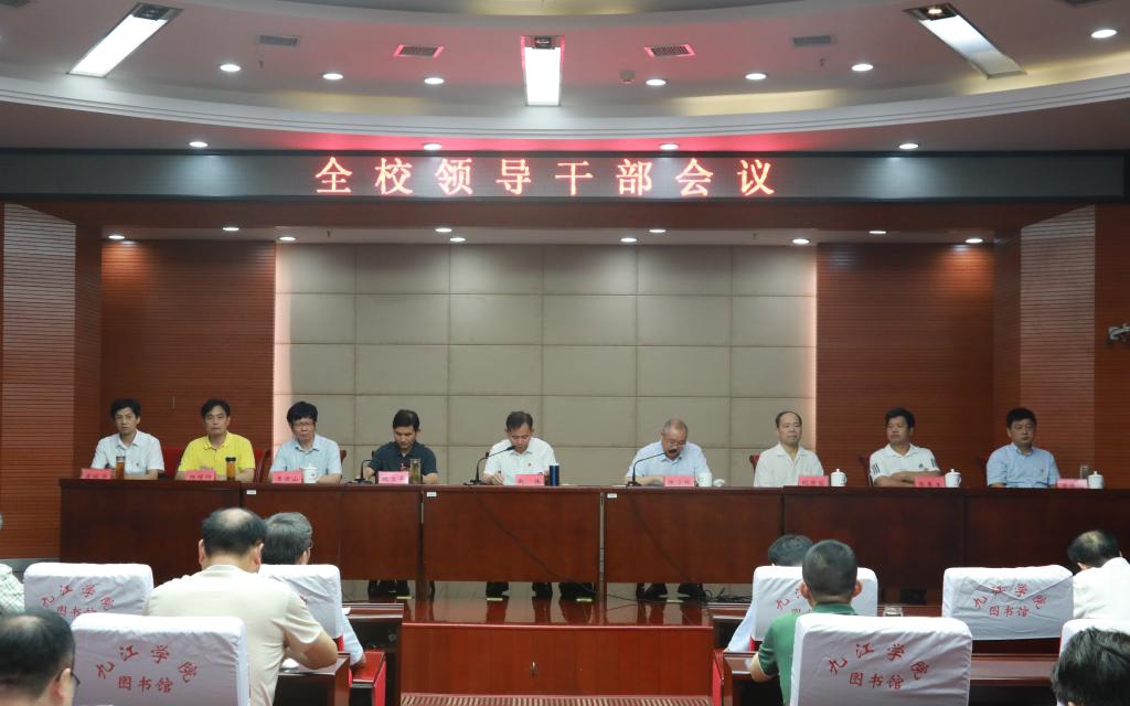 7月3日上午,学校在逸夫图书馆报告厅召开期末领导干部会议,对学校期末和暑假期间相关工作进行了部署安排。校党委书记赵伟,校长陈小林,副校长纪岗昌、王万山、陈春生、杨耀防、夏启国、查振华,党委委员王殿元、冯健、刘遵海出席会议。会议由校党委副书记魏立平主持。全校各部门和二级学院党政负责人参加会议。