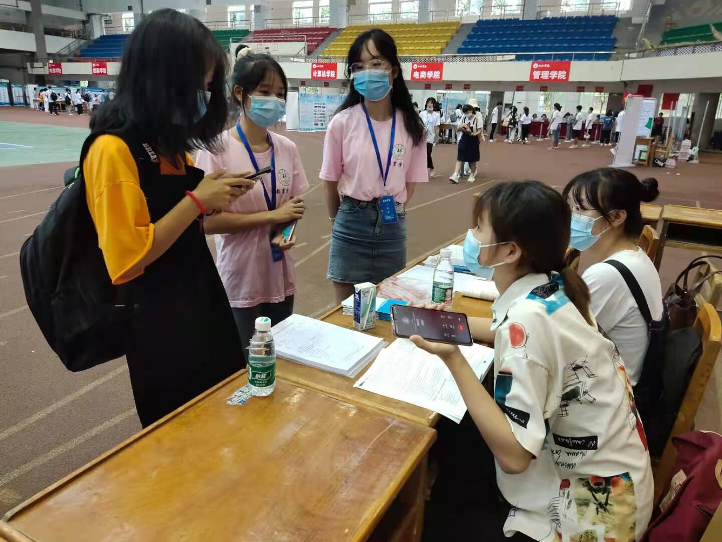 9月5日,我校迎来了2021级新生。在北区田径馆迎新现场,“绿色通道”、“学生资助政策咨询处”工作人员早早地准备好了一切环节,确保我校困难新生顺利入学。