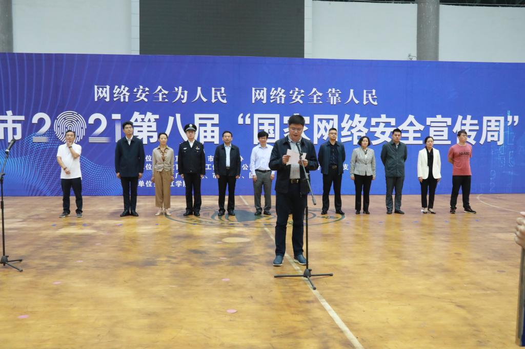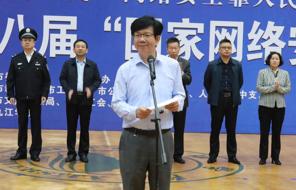 10月11日至10月17日,是我国第八个网络安全宣传周。为进一步增强全市网民的网络安全意识,营造网络安全人人有责、人人参与的良好氛围,10月11日上午9:30,九江市第八届“国家网络安全宣传周”启动仪式在我校北区田径馆举行。我校副校长王万山出席仪式并致辞,市委网信中心副主任尹仁平主持启动仪式。我校党委委员、宣传部长冯健,市委宣传部互联网信息办专职副主任欧阳小竹,九江市公安局、教育局、国安局二级调研员夏卫、工信局、总工会、团市委、妇联、人行九江中心支行、文广新旅局、九江新闻网等有关单位相关负责人和代表300人参加了启动仪式。