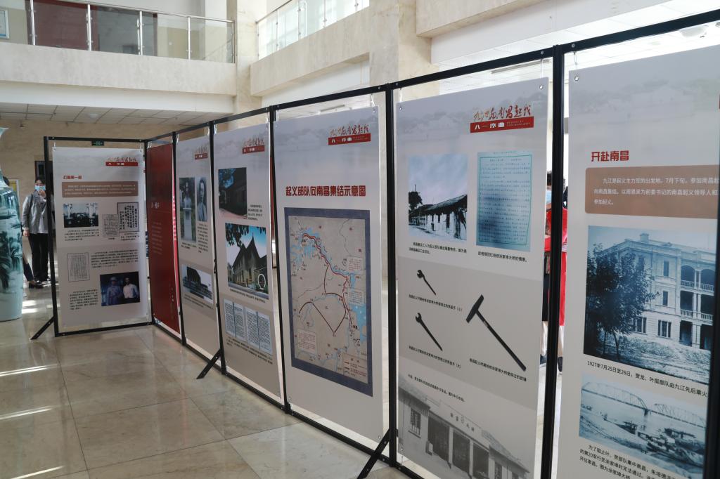 为学习贯彻习近平总书记“七一”重要讲话精神,深入开展党史学习教育,大力传承红色基因,赓续红色血脉,着力培养担当民族复兴大任的时代新人,10月12日上午,“八一序曲——九江与南昌起义”主题展览在我校开展。副校长严平,九江市文化广电新闻出版旅游局党委委员黄贤沐,九江市文物保护中心主任熊凯、副主任张浩等参观了展览。