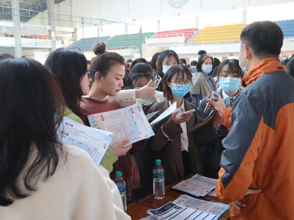 本次招聘会面向2022届经济与管理类1700余名毕业生,来自广东、上海、浙江、江西省内等地80余家企业参与,向众多毕业生抛出“橄榄枝”,所需岗位需求范围广,提供招聘职位300余个,招聘人数3500余人,招聘会现场人头攒动,气氛热烈。