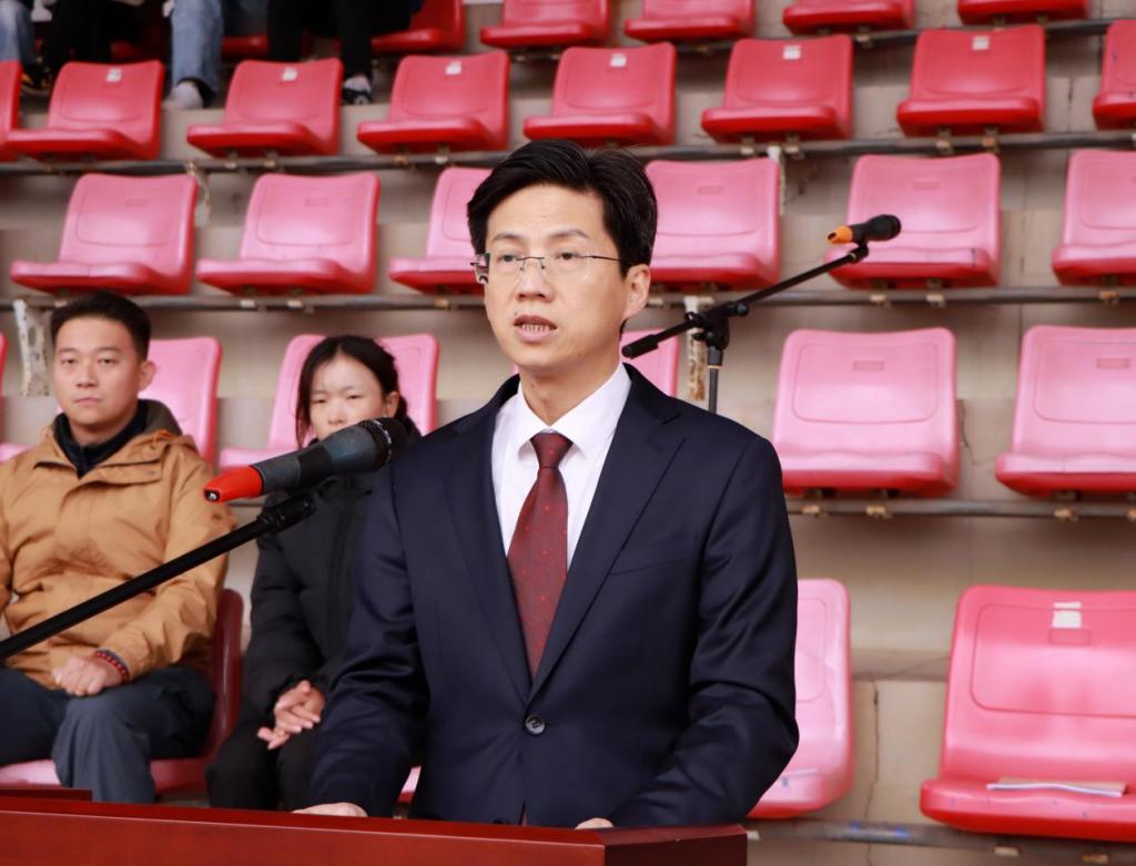 开幕式上,查振华代表学校对运动会的顺利召开表示热烈祝贺。他指出,体育承载着国家强盛与民族振兴的梦想,加快建设体育强国、健康中国是实现中国式现代化的内在要求,大力发展学校体育事业是落实“五育并举”、促进学生全面发展的重要途径。校运会既是检验学校竞技体育与素质教育成果的平台,也是推动运动普及、增强师生体质的重要举措。他希望全校师生牢固树立“健康第一” 和“终身体育”的理念,积极参与体育运动,在体育锻炼中享受乐趣、增强体质、健全人格、锤炼意志,以健康体魄迎接未来挑战。