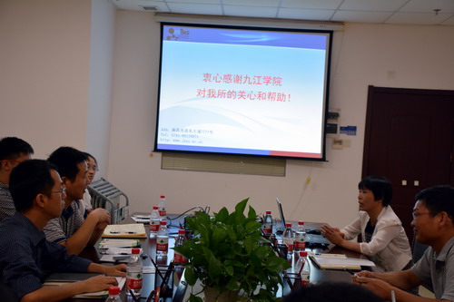 杨期勇首先介绍了此行目的,对我校鄱阳湖生态经济研究中心的发展历程、研究方向与科研成果作了详细介绍,希望双方在藻类和环境微生物研究领域加强合作与交流,并表示中心将大力支持中心成员与省科学院微生物所的项目合作。
