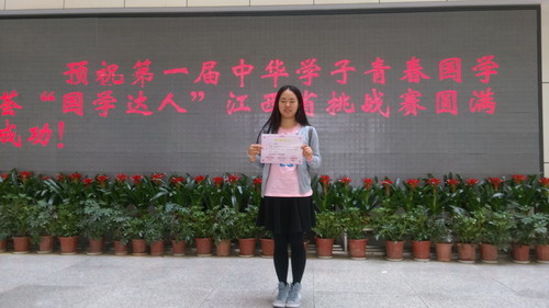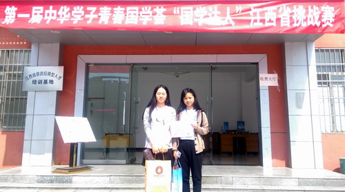 10月11日,由共青团江西省委、江西省学生联合会、江西少工委共同举办的第一届中华学子青春国学荟“国学达人”江西省挑战赛在南昌师范学院举行,来自全省各地的69位选手参加了本次比赛,经过激烈角逐,由我校团委选送的文传学院A1361王玥同学、A1461辜文琴同学获得第四名和第七名的好成绩,分别荣获大学组“国学达人进士”和“国学达人同进士”称号。